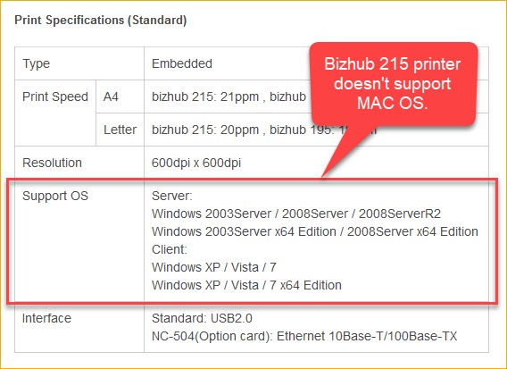 Confirm the version of os where you want to install your printer and choose that os version in next, download the konica minolta bizhub 215 printer driver associated with your os.